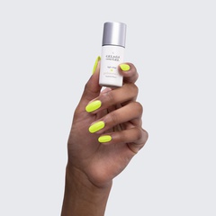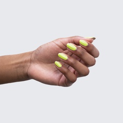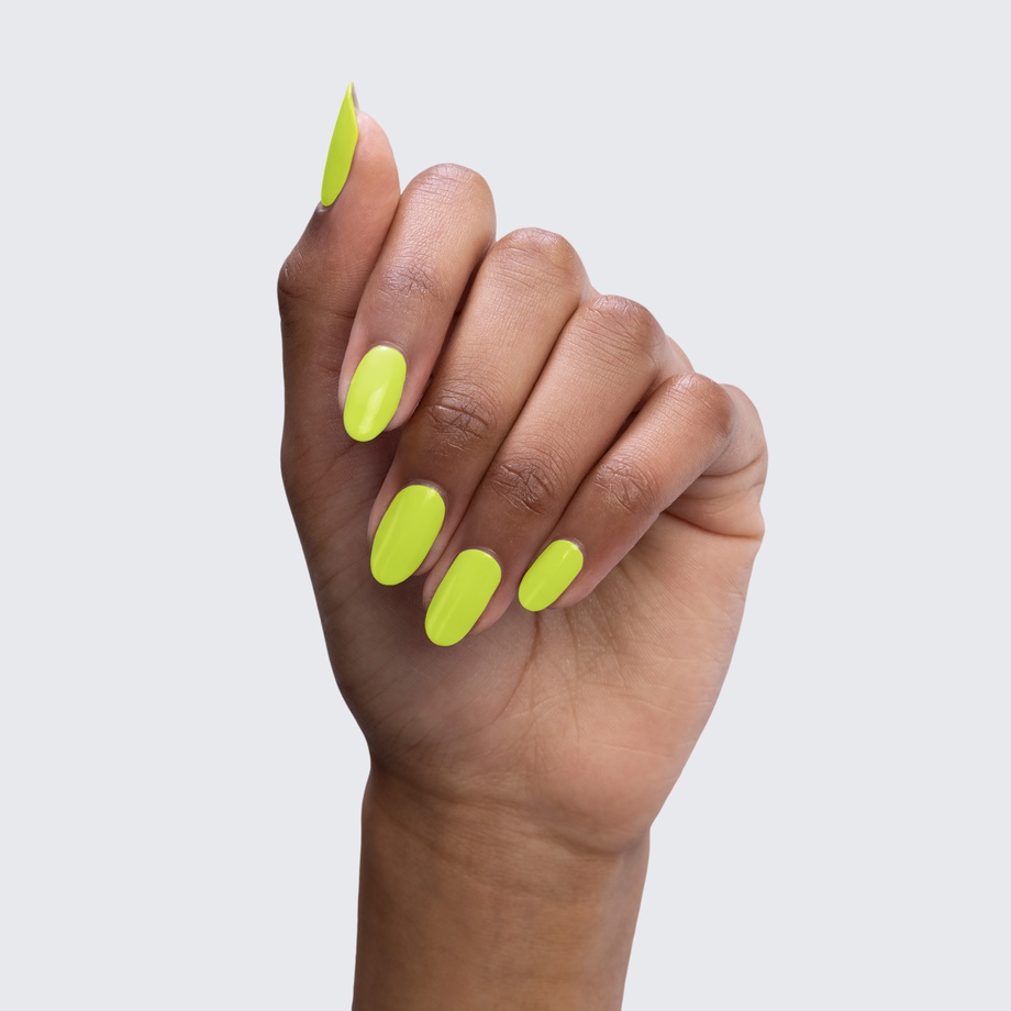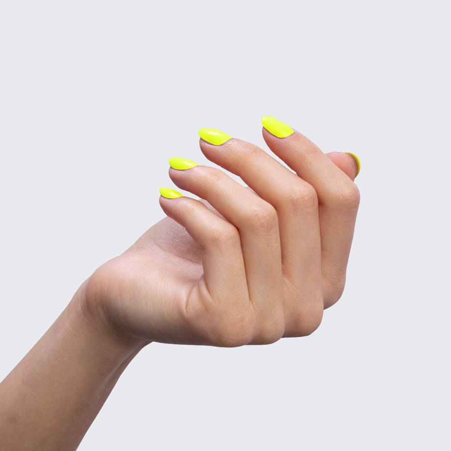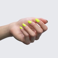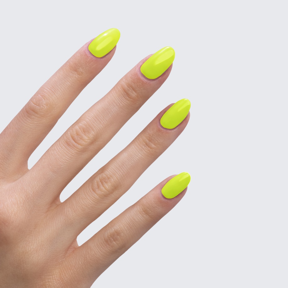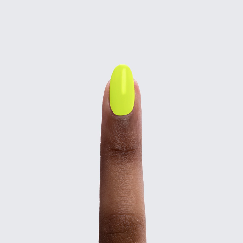 Neon yellow. Bright. Cool undertone. Medium opacity.
